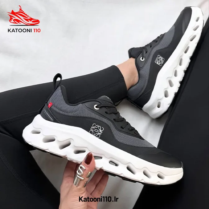 ۱. زبان طراحی جاناتان اندرسون این مدل تحت نظارت مستقیم جاناتان اندرسون، مدیر خلاقیت Loewe طراحی شده است. برخلاف مدلهای کلاسیک On که ظاهری کاملاً فنی دارند، Cloudtilt خطوطی نرم تر، یکپارچه تر و مینیمالتر دارد. لوگوی چهارگانه Loewe (که به Anagram معروف است) با ظرافت در کناره کفش جای گرفته و هویت لوکس آن را فریاد میزند، بدون اینکه توی ذوق بزند.
