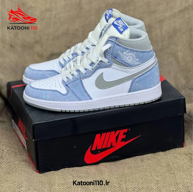 وجه تمایز اصلی و دلیل جذابیت بالای این کفش، ترکیب رنگی منحصربفرد آن است: استفاده هوشمندانه از جیر پریمیوم به رنگ آبی آسمانی (Hyper Royal) با ظاهری سنگ شور و خاص، در کنار تعادل بینظیر چرم سفید خالص و جزئیات طوسی (Light Smoke Grey) در بخش لوگوی Swoosh و یقه، ظاهری لوکس، بادوام و راحت را تضمین کرده و اصالت را با استایلی مدرن پیوند میزند.